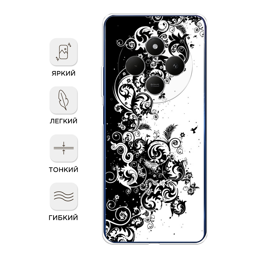 Чехол на Xiaomi Redmi 14C/Poco C75 4G / Сяоми Редми 14C/Поко C75 4G с принтом Черно белый узор информация: