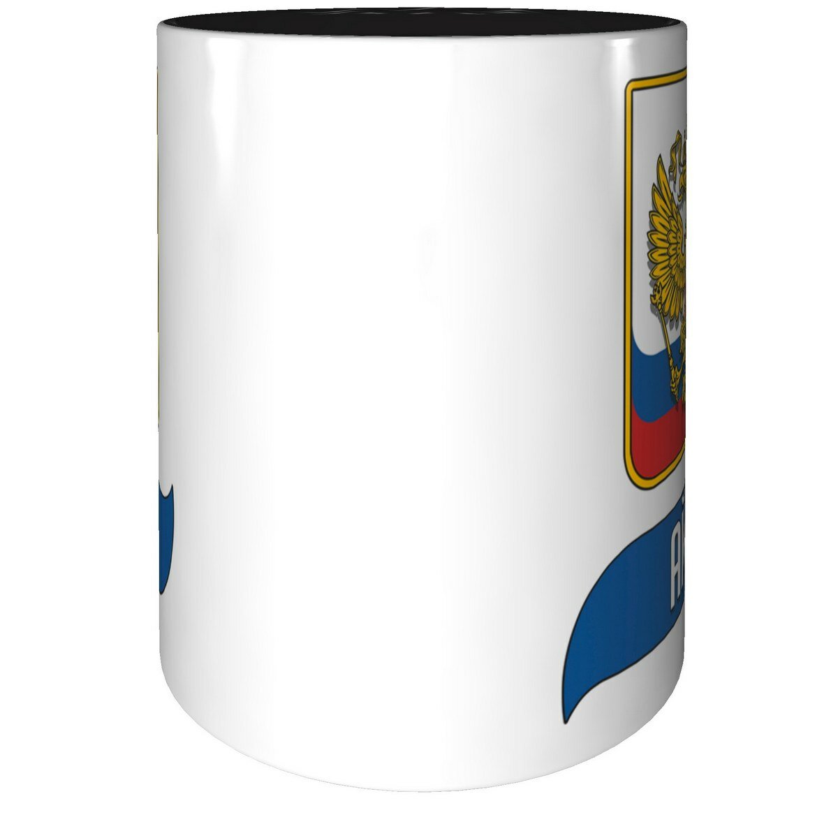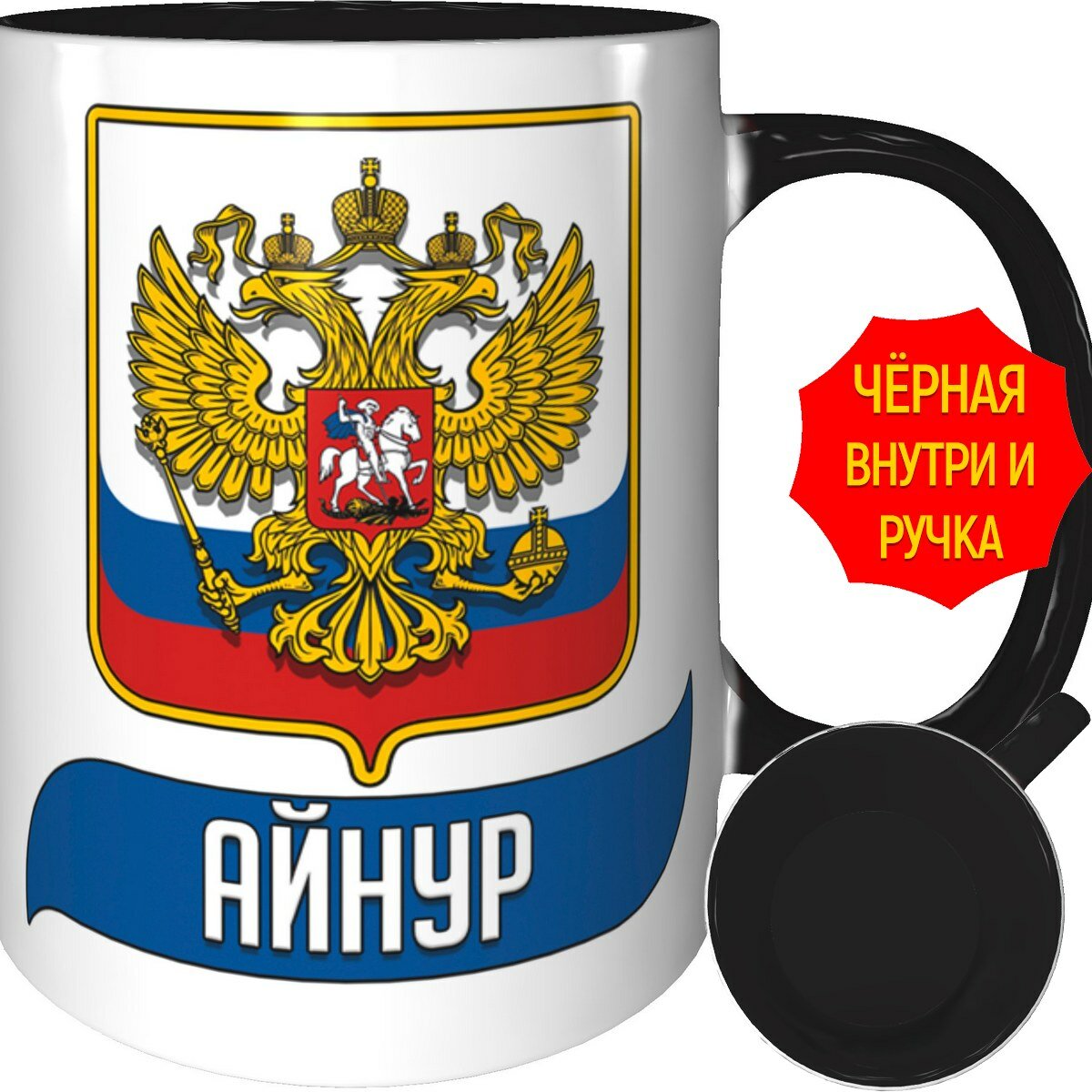 Кружка Айнур с Флагом и Гербом России - внутри и ручка чёрная информация: