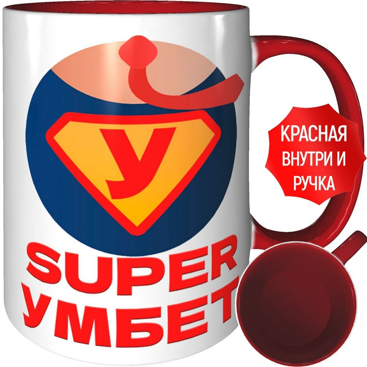 Кружка супер Умбет - с красной ручкой и красная внутри информация: