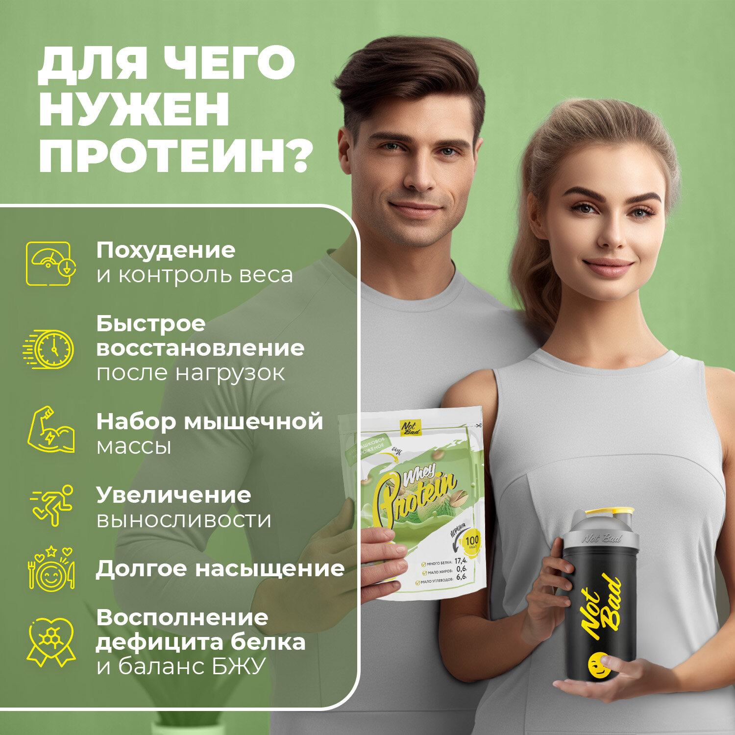Отзывы на Протеин сывороточный NOTBAD Whey Protein, Фисташковое мороженое, 450 г