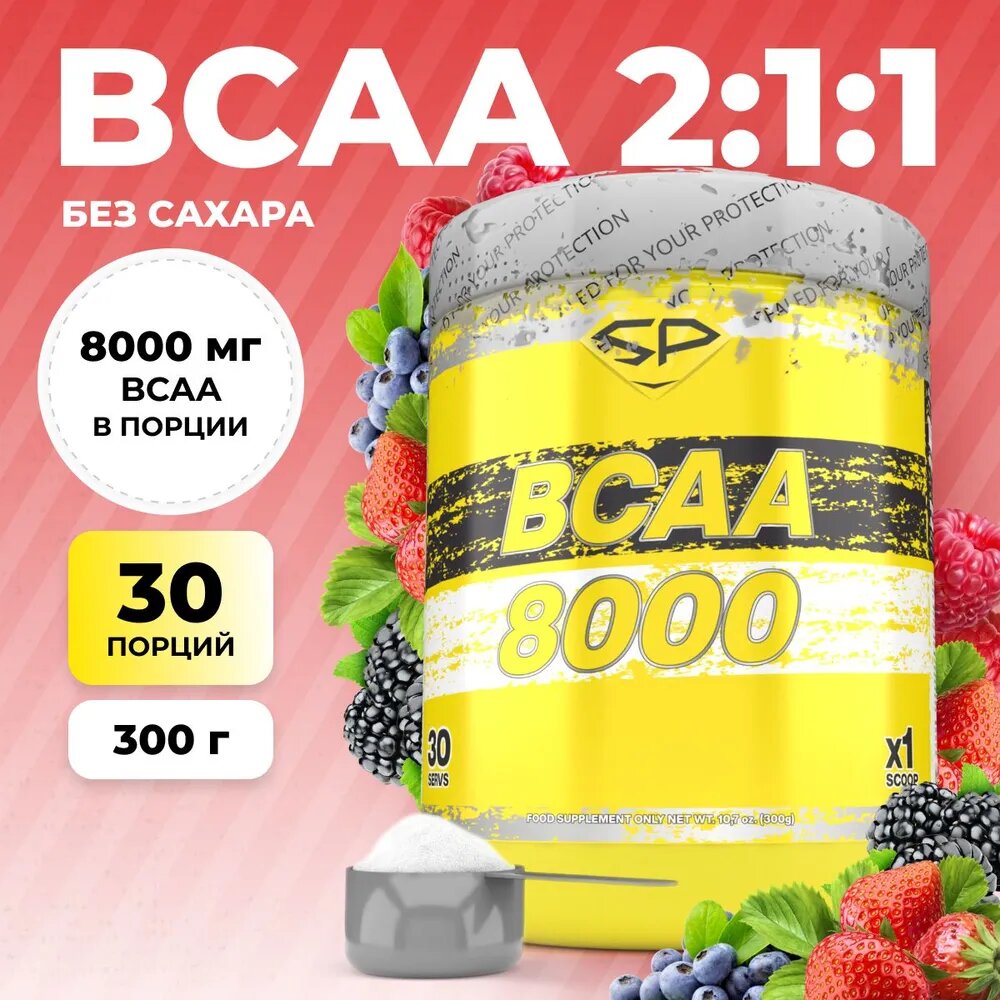 Аминокислоты STEELPOWER BCAA 8000, 300 гр, Лесные ягоды, 30 порций / ВСАА 2:1:1 (БЦАА 2:1:1) для похудения без сахара, без углеводов