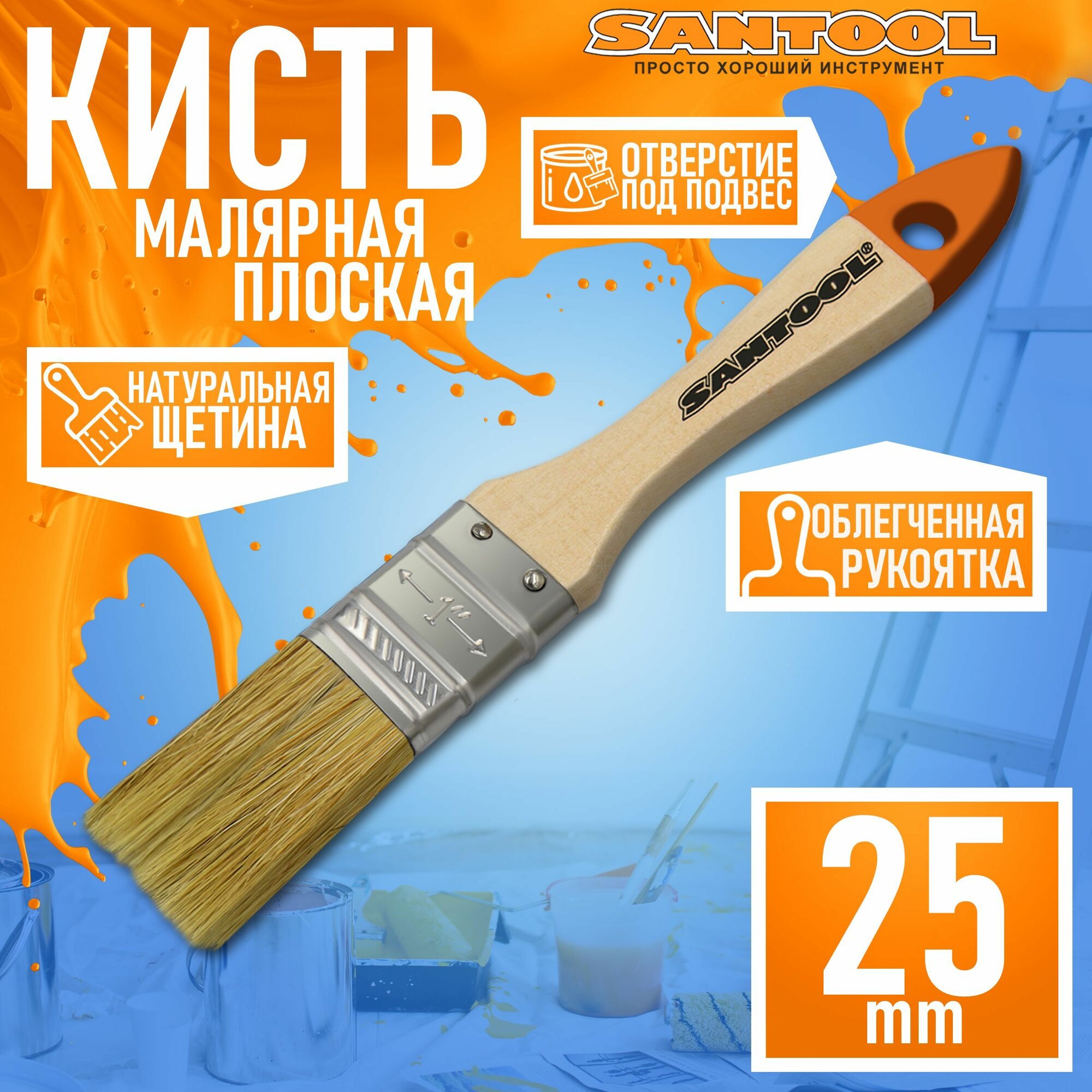 Кисть малярная SANTOOL "лайт" плоская, натуральная щетина, деревянная ручка 1" (25 мм) информация: