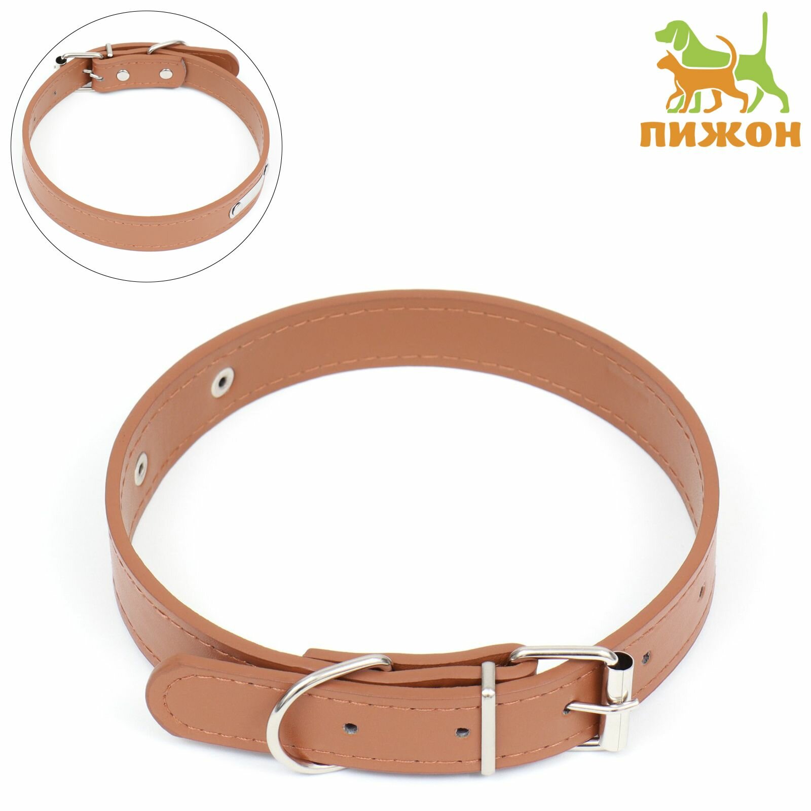 Отзывы на Ошейник из искусственной кожи с шильдом под гравировку, 52 х 2,5 см, ОШ 35-45 см, коричневый