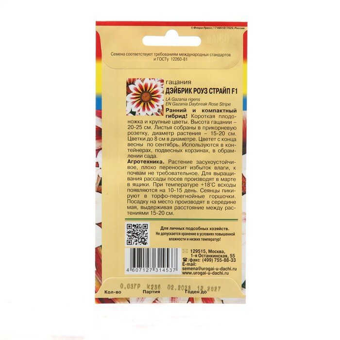 Семена цветов Гацания "Дэйбрик Роуз Страйп", F1, 0,01 г информация: