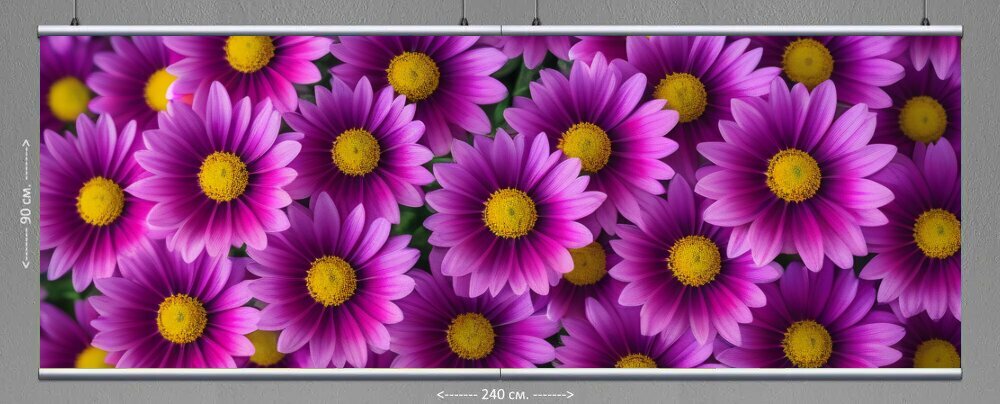 10 цен на Картина на холсте "Счастье и здоровье через цветы" с подвесами 240х90 см. для интерьера на стену