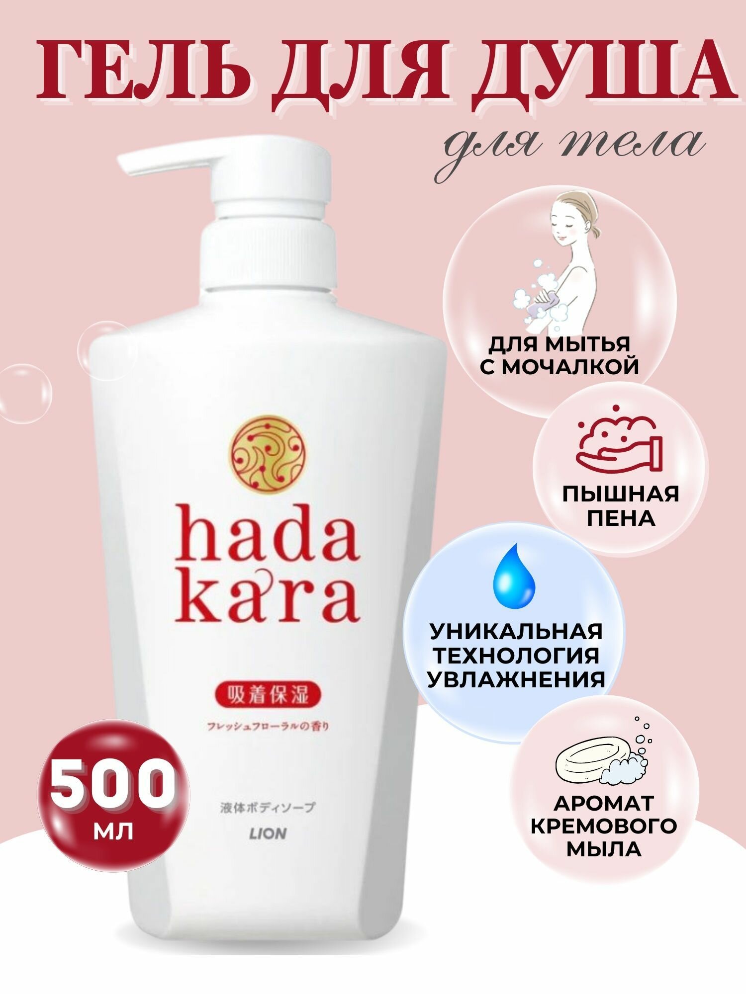 LION Мыло для тела Hadakara с цветочным ароматом, 500 мл.