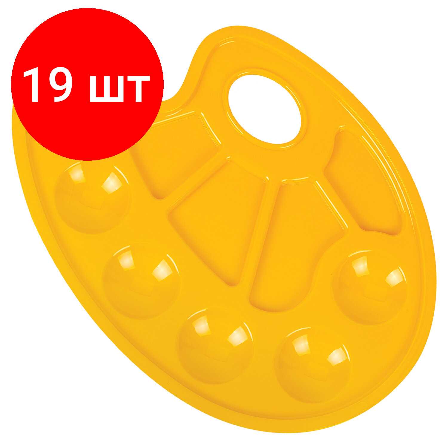 Отзывы на Комплект 19 шт, Палитра для рисования юнландия желтая, овальная, 6 ячеек для красок и 4 для смешивания, европодвес, 227807