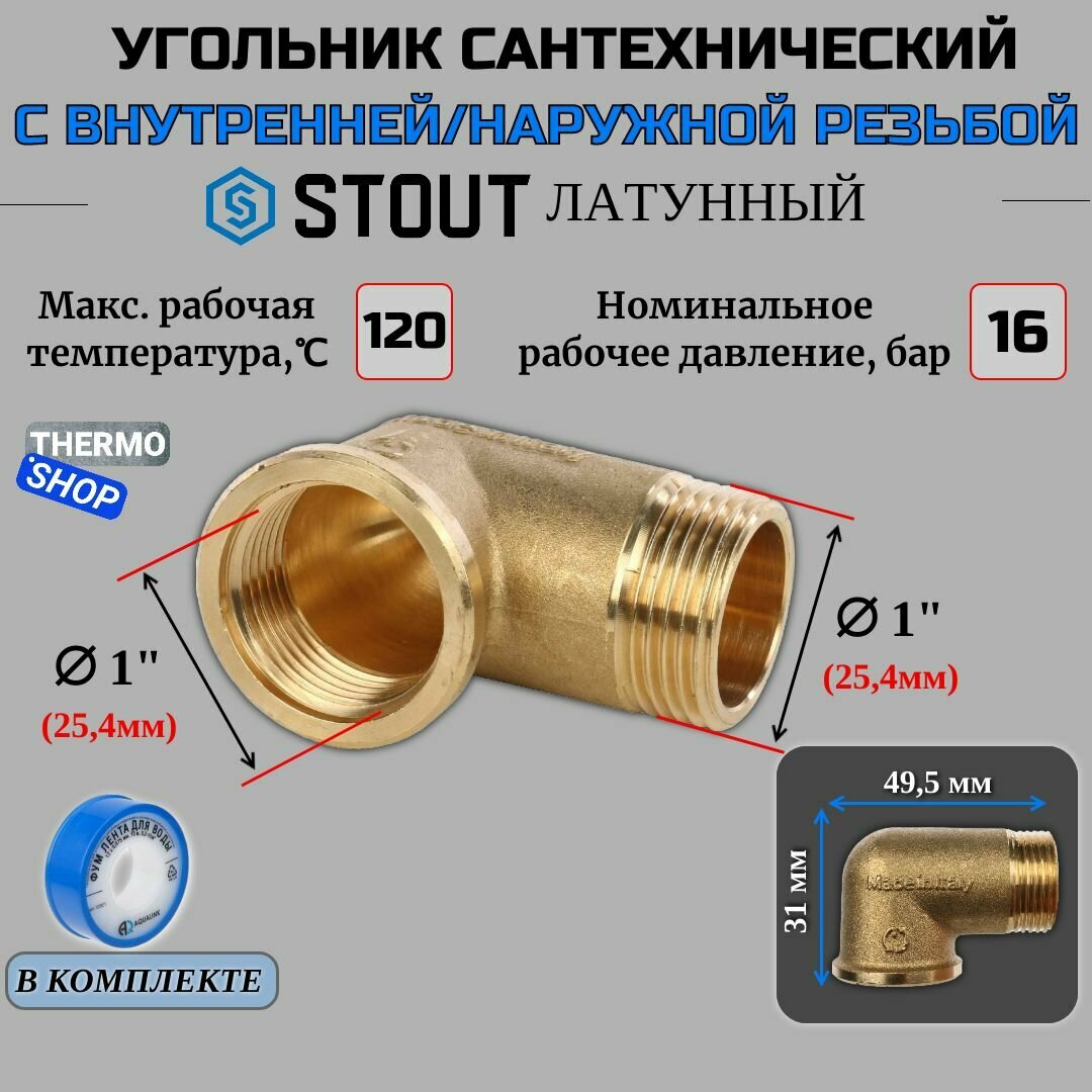Уголок 1 1/4 НВ 10 шт латунный сантехнический (угол) STOUT ФУМ лента 10 м 15 195 ₽