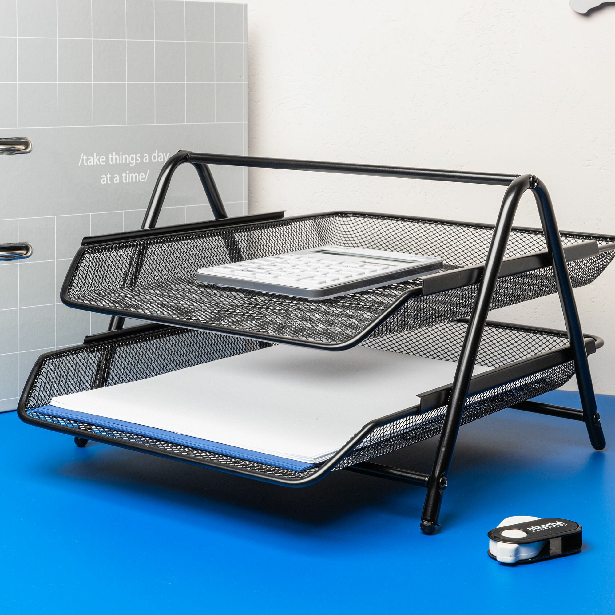 Лоток для бумаг Attache металл, сетка, 356х278х53 мм, черный, 2 уровня (688770)