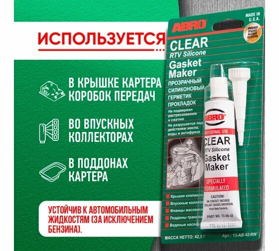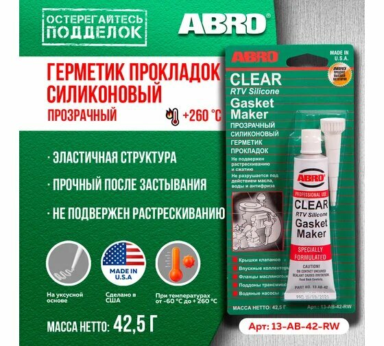 Герметик прокладок прозрачный, 42,5 г abro 13ab-42-r 530 ₽