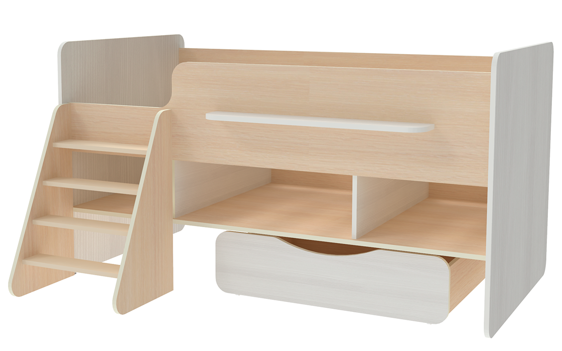 Кровать чердак Л 6 Дуб Молочный Белое Дерево информация: