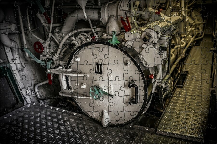 Магнитный пазл "Подводная лодка, торпедный аппарат, закрыто" на холодильник 27 x 18 см. информация: