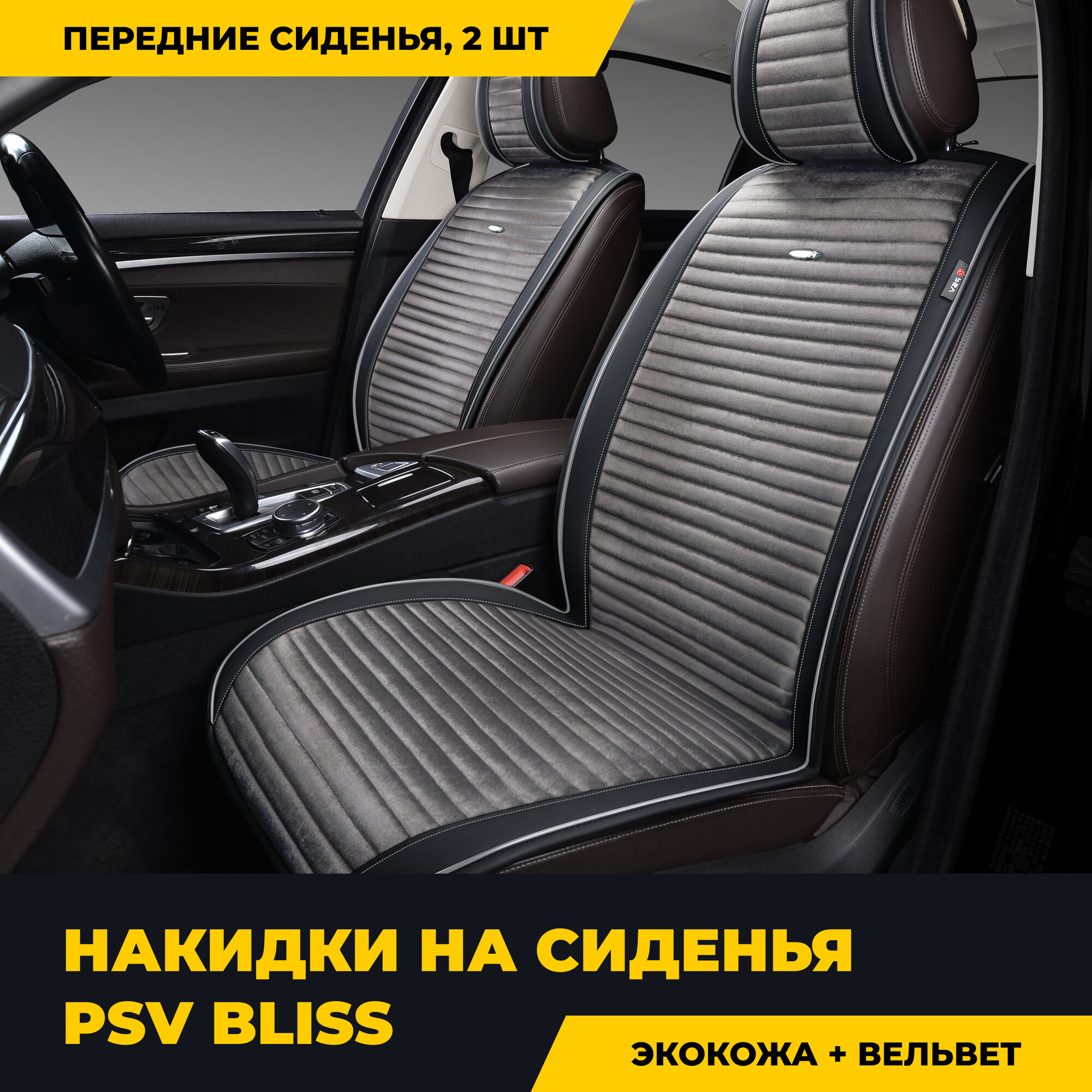 Накидка На Сиденье Psv Bliss 2 Передняя Экокожа/Вельвет 2 Шт. Черно-Серая PSV арт. 131871