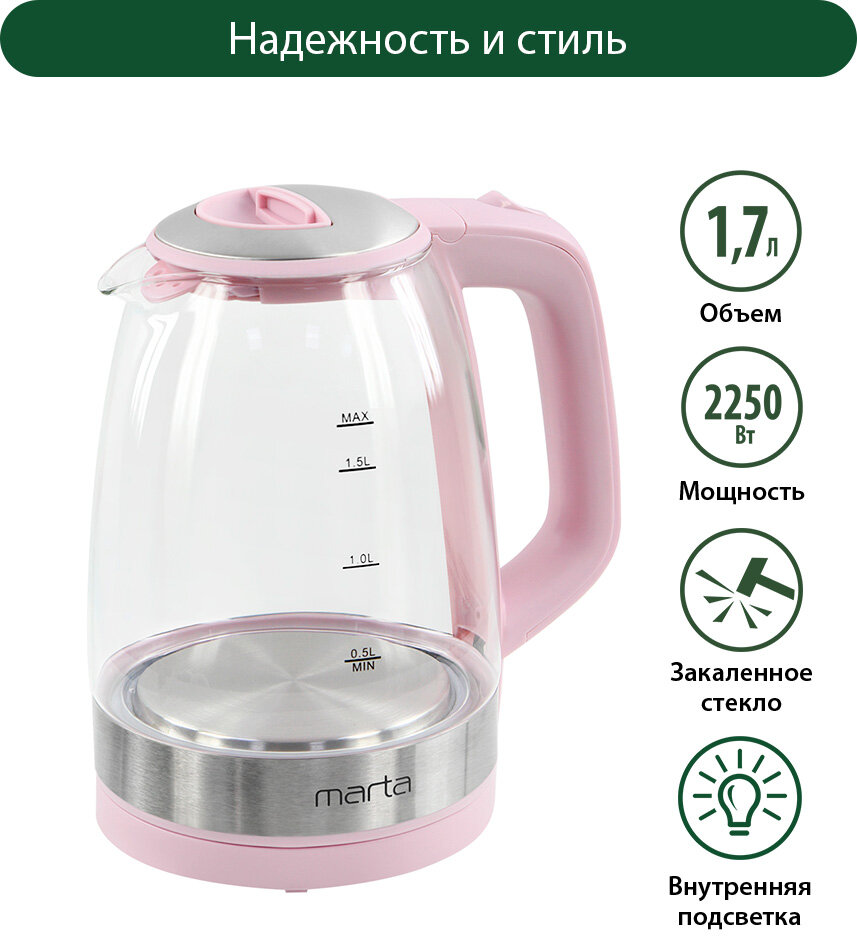 Чайник MARTA MT-1078 D/Tp стекло 2250Вт 1.7л Темный топаз