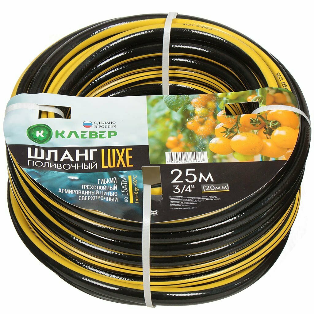 Шланг поливочный, 3/4 '', 20 мм, 15 атм, армированный, 25 м, 3 слоя, Клевер, Люкс, ПВХ, черно-желтый информация: