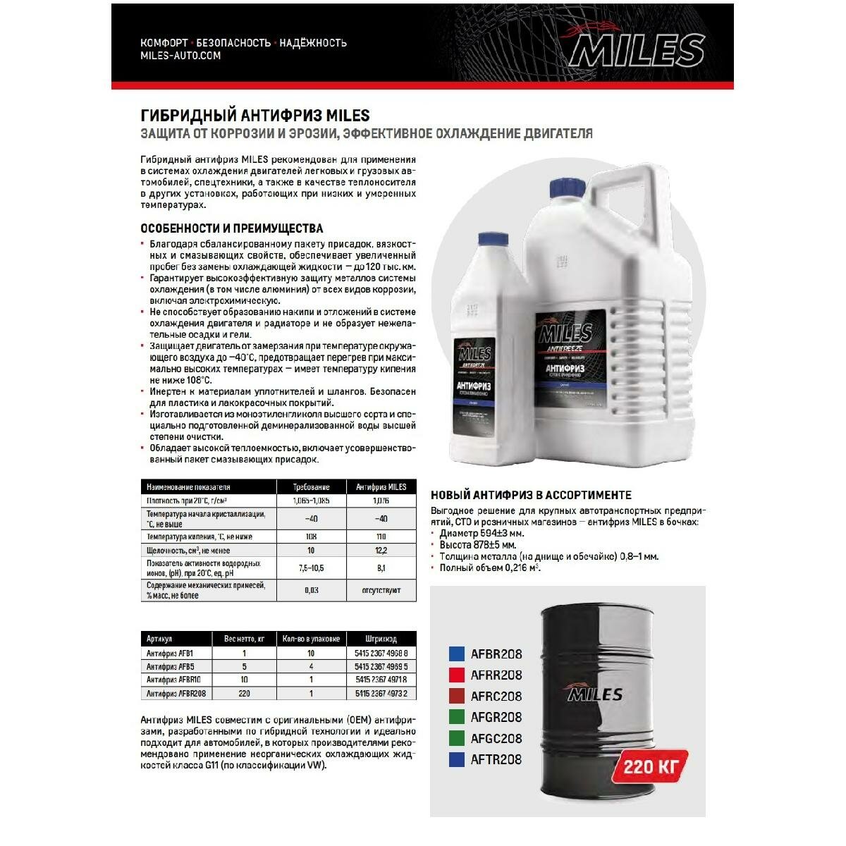 Антифриз G11 (синий) 1кг. Miles AFB1 информация: