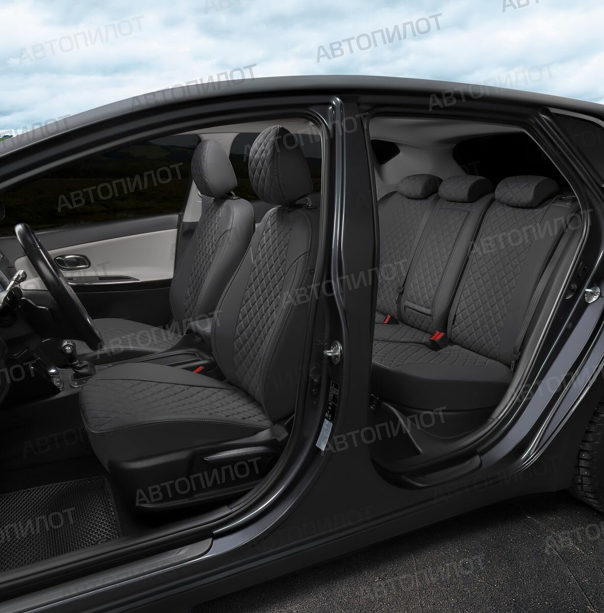 Комплект чехлов АВТОПИЛОТ из экокожи для Mitsubishi Lancer 10 седан, ромб