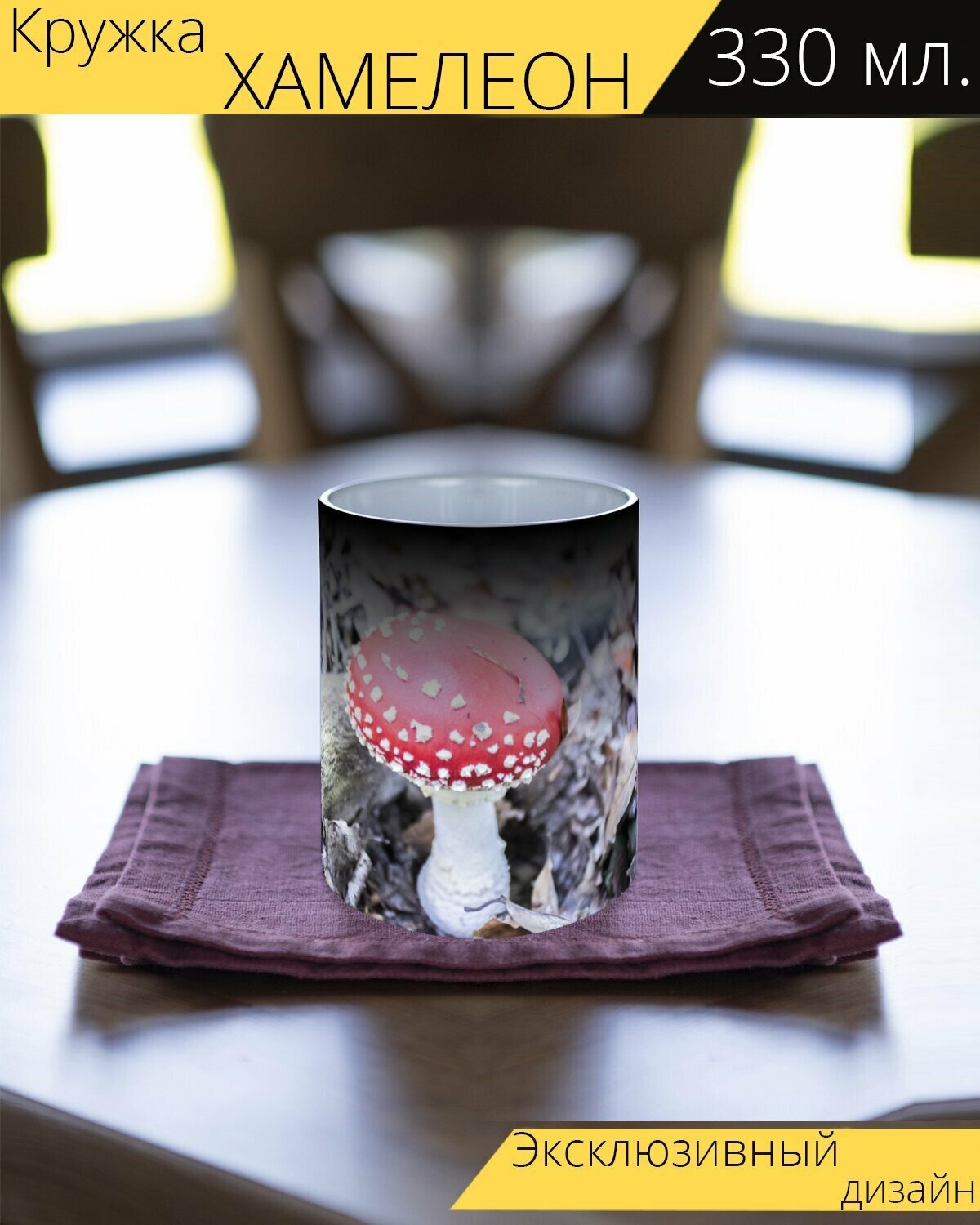 Кружка хамелеон с принтом "Гриб, красный гриб, белый" 330 мл. информация:
