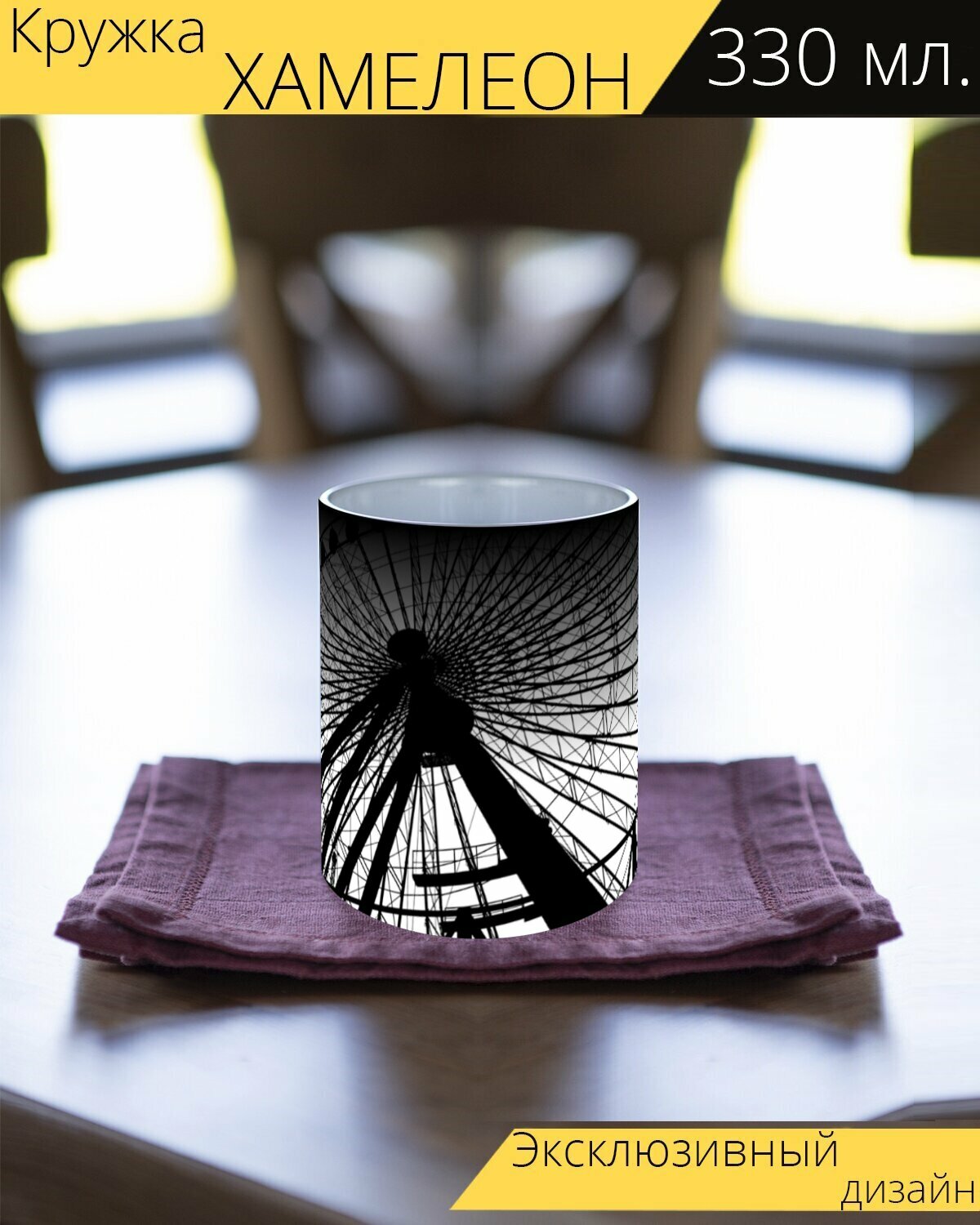 Кружка хамелеон с принтом "Колесо обозрения, парк культуры и отдыха, силуэт" 330 мл. информация: