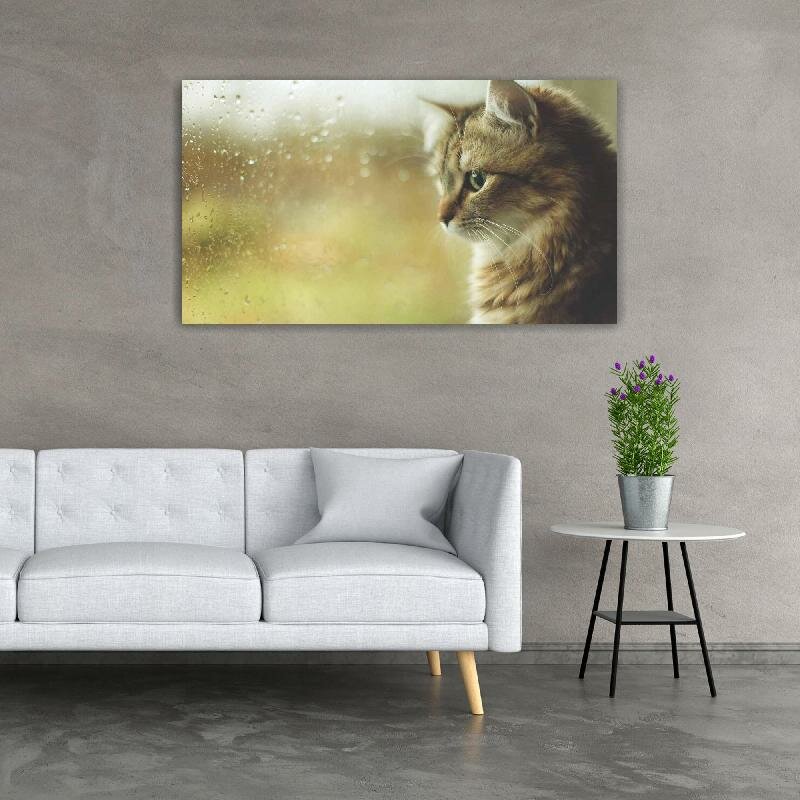 Картина на холсте 60x110 Альянс Лес "Осень котэ капли дождь окно" на подрамнике / интерьер/ декор информация: