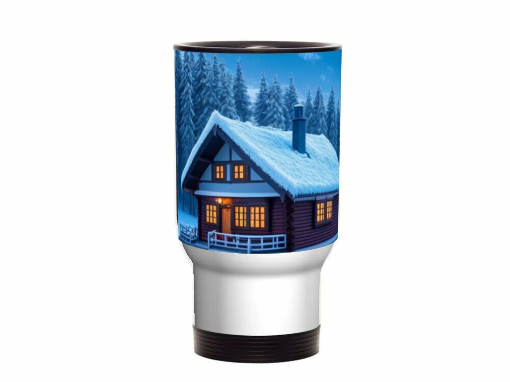 Тремокружка для авто с принтом "Зимний пейзаж с маленьким домиком" 0.5 л. информация: