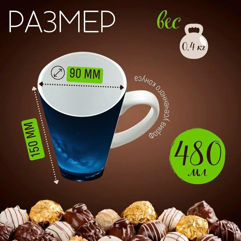 Кружка латте керамическая большая для чая и кофе с прикольным принтом "Горы под ночным небом, усыпанным звёздами" 500 мл. информация: