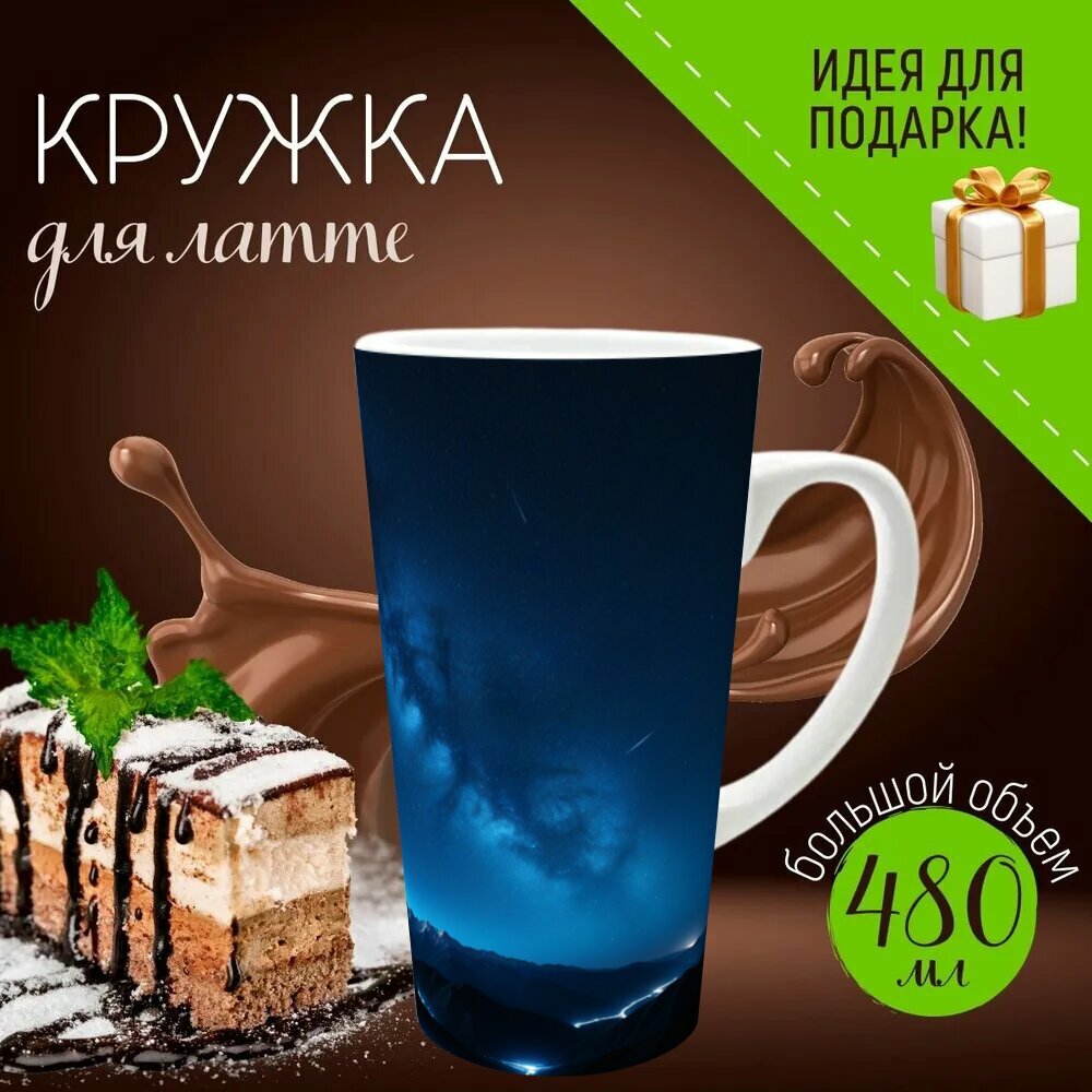 10 цен на 4 шт. Набор кружек с принтом "Горы под ночным небом, усыпанным звёздами" 500 мл.