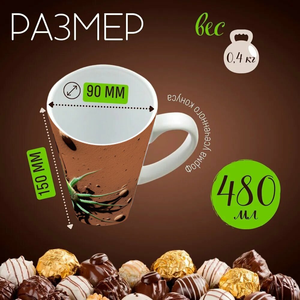 Кружка латте керамическая большая для чая и кофе с прикольным принтом "Флора и фауна на марсе" 500 мл. информация: