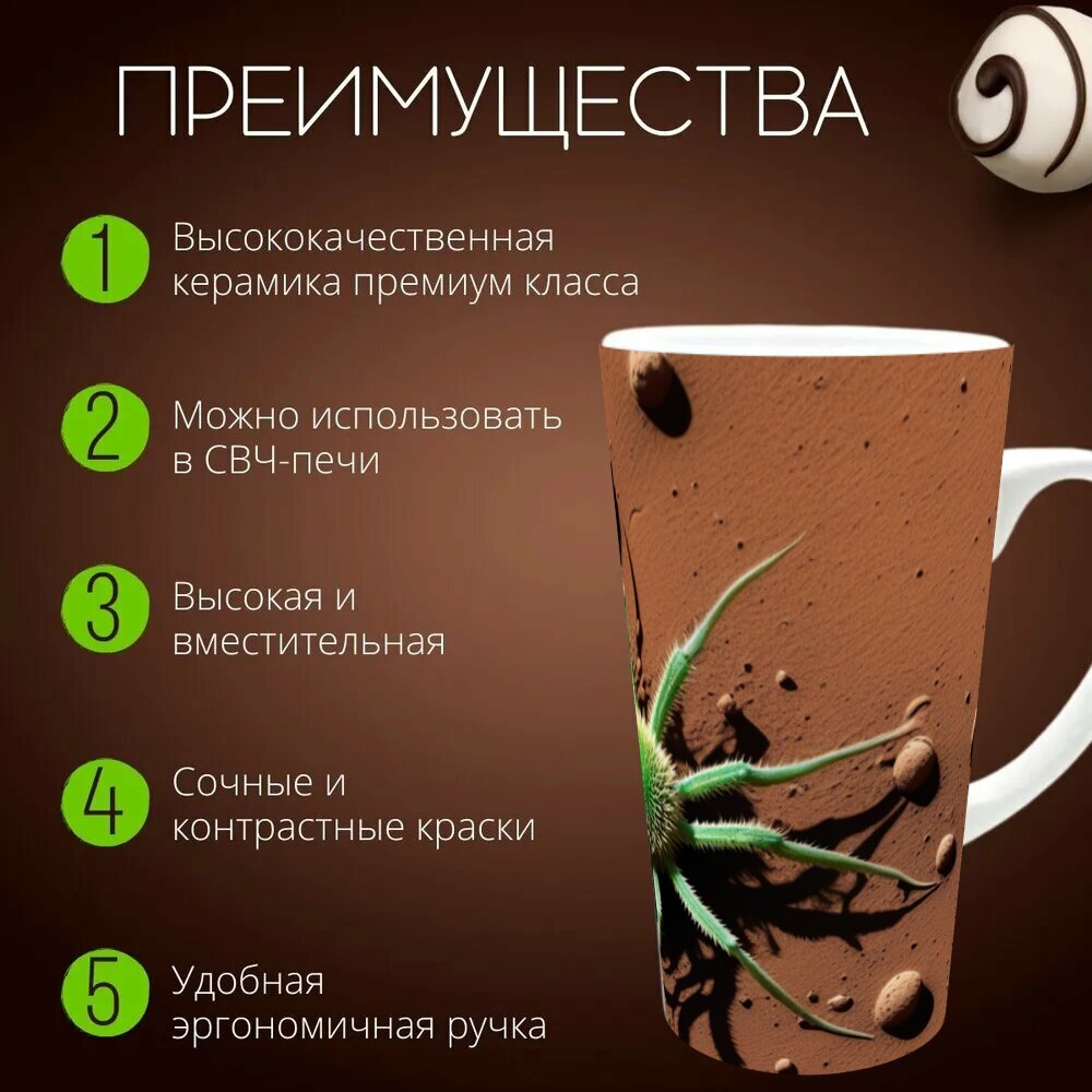 10 цен на Кружка латте керамическая большая для чая и кофе с прикольным принтом "Флора и фауна на марсе" 500 мл.