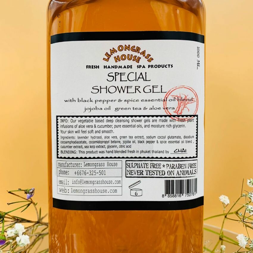 Гель для душа "Черный перец и специи" 1л. от Lemongrass House (Таиланд) Безсульфатный натуральный гель, увлажняющий, с пряным ароматом, с эфирными маслами. информация: