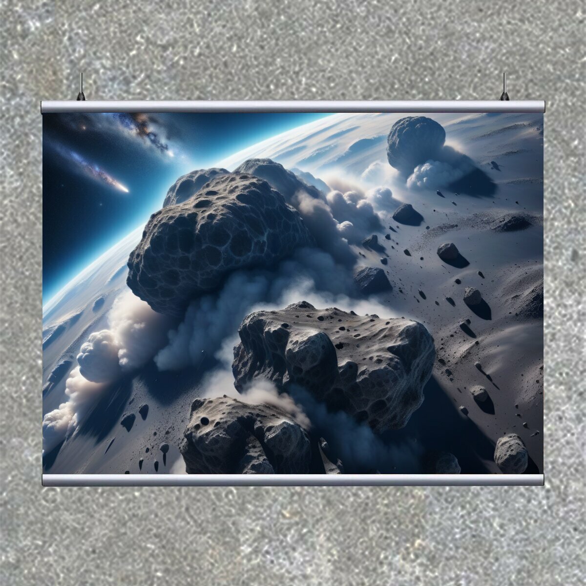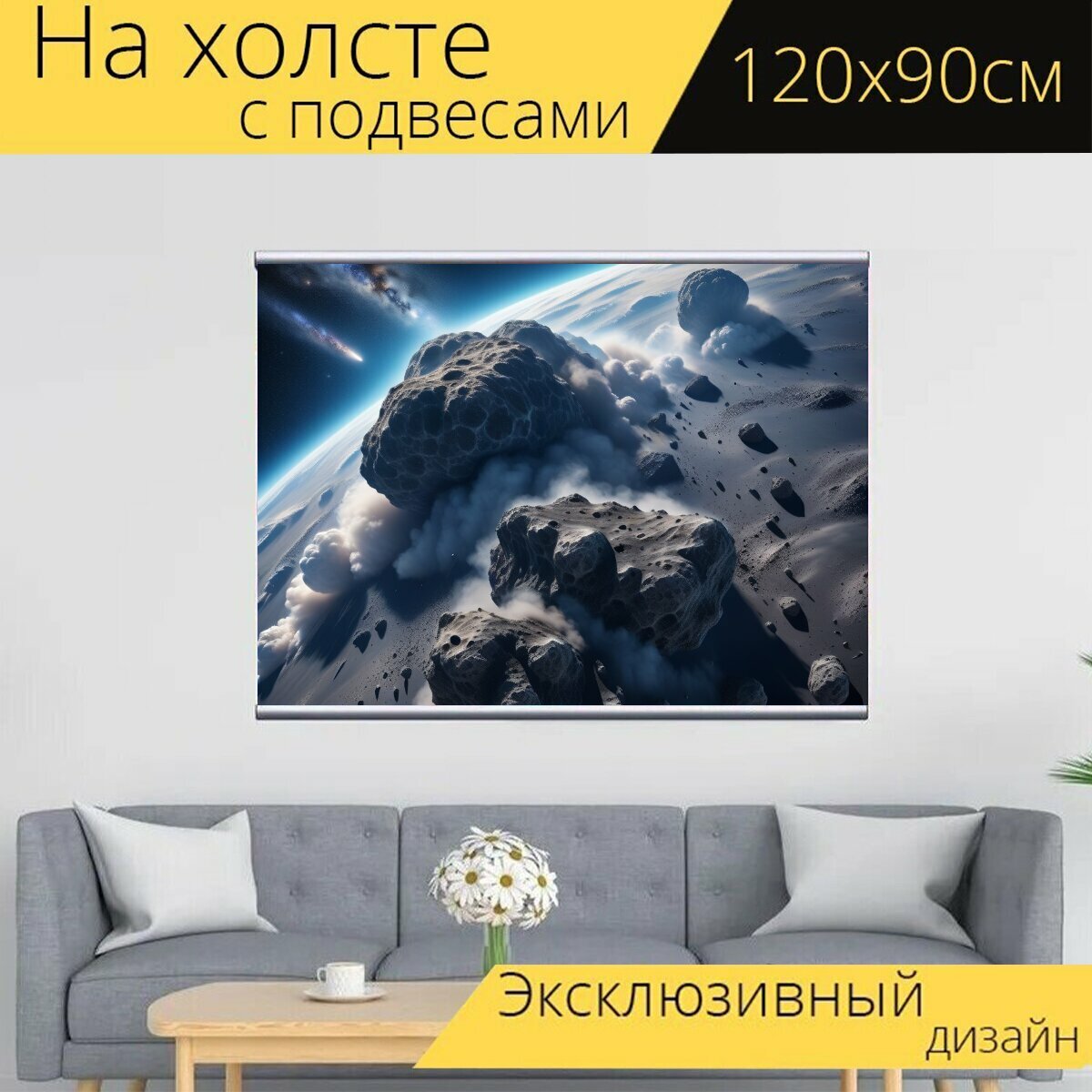 Картина на холсте "Плотные облака космической пыли и метеоритов" с подвесами 120х90 см. для интерьера на стену информация:
