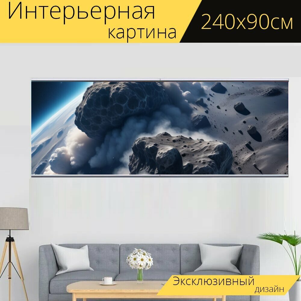 Картина на холсте "Плотные облака космической пыли и метеоритов" с подвесами 240х90 см. для интерьера на стену информация: