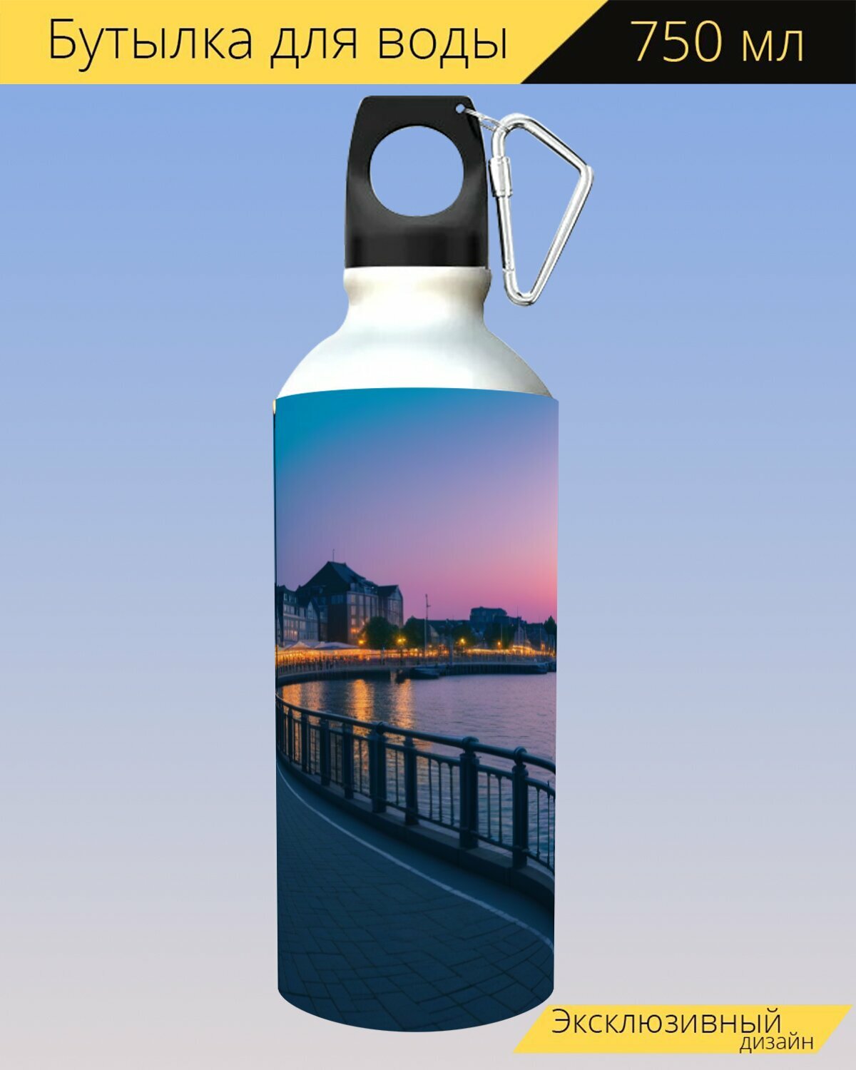 Бутылка фляга для воды "Летний вечер на набережной" 750 мл. с карабином и принтом информация: