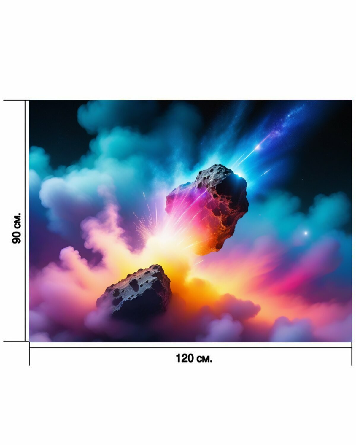 Картина на холсте "Легкие метеориты сквозь красочный туман в космосе" с подвесами 120х90 см. для интерьера на стену информация:
