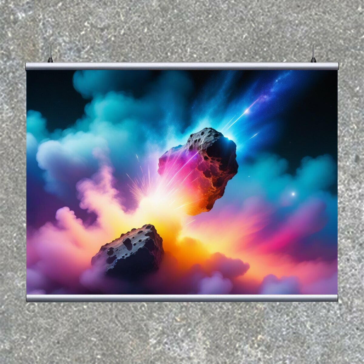 Отзывы на Картина на холсте "Легкие метеориты сквозь красочный туман в космосе" с подвесами 120х90 см. для интерьера на стену