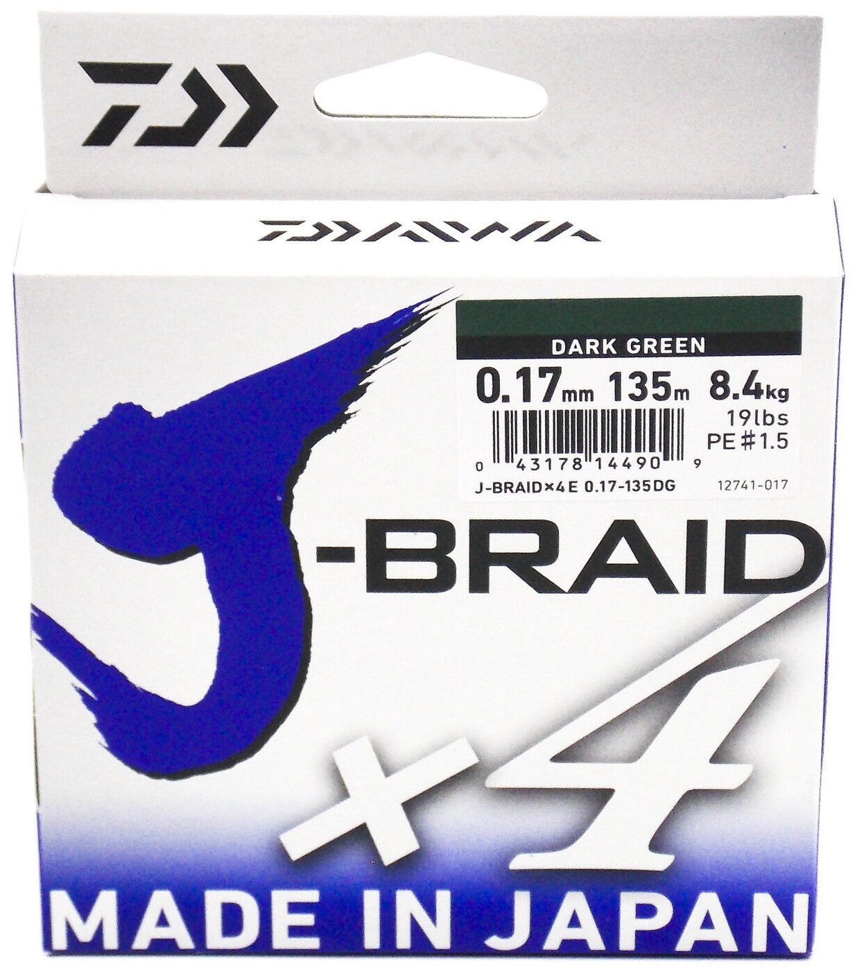 Плетеный шнур Daiwa FISHINGJ-Braid X4FISHING 0,17мм 135м, темно-зеленый, 8,4кг информация: