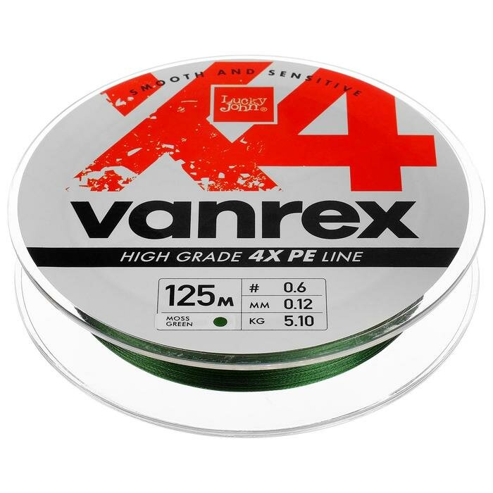 Леска VANREX Х4 плетёная 125m, 0.12mm, 5.10kg тёмно-зел. "Lucky John" информация:
