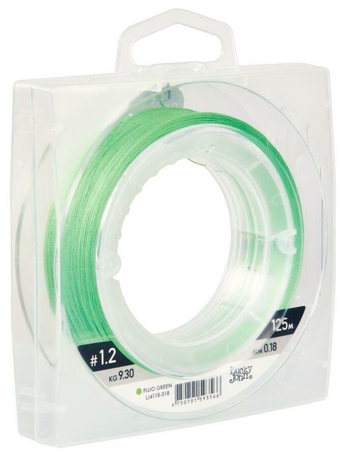 Леска плетёная Lucky John Vanrex х8 BRAID Fluo Green 0.18 мм 125 м 9.3 кг