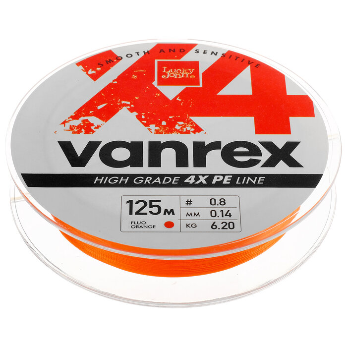 Леска плетёная Lucky John Vanrex х4 BRAID Fluo Orange 125/017 информация: