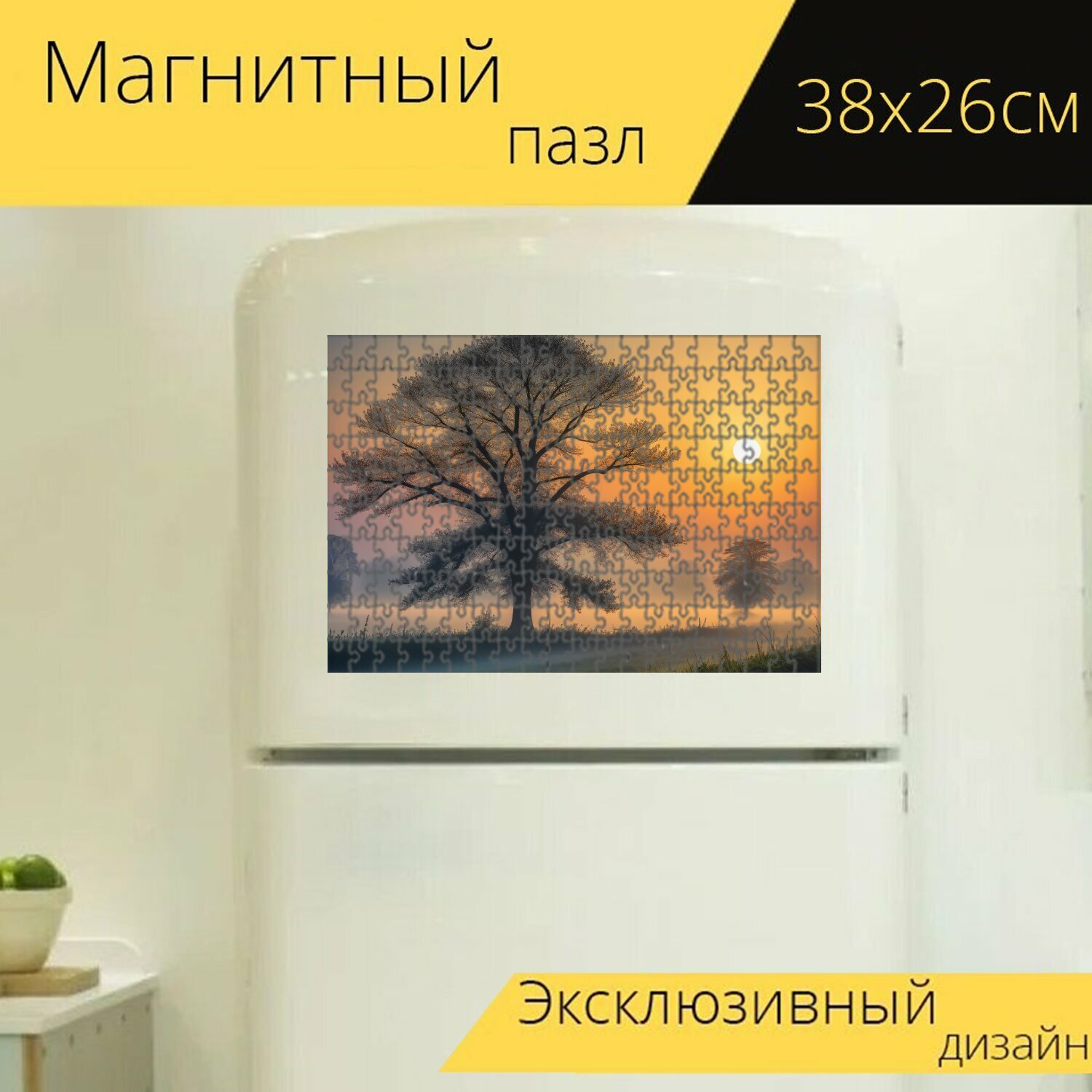 Магнитный пазл "Туманное утро с рассветом" для интерьера, 38х26 см. информация: