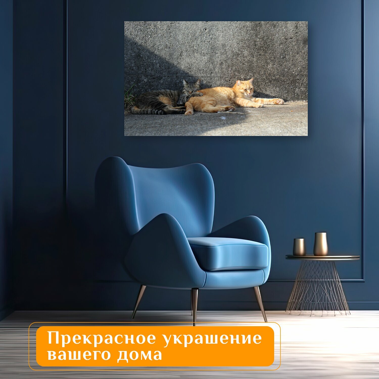 Отзывы на Картина на холсте "Кошки, полосатый, улица" на подрамнике 120х75 см. для интерьера