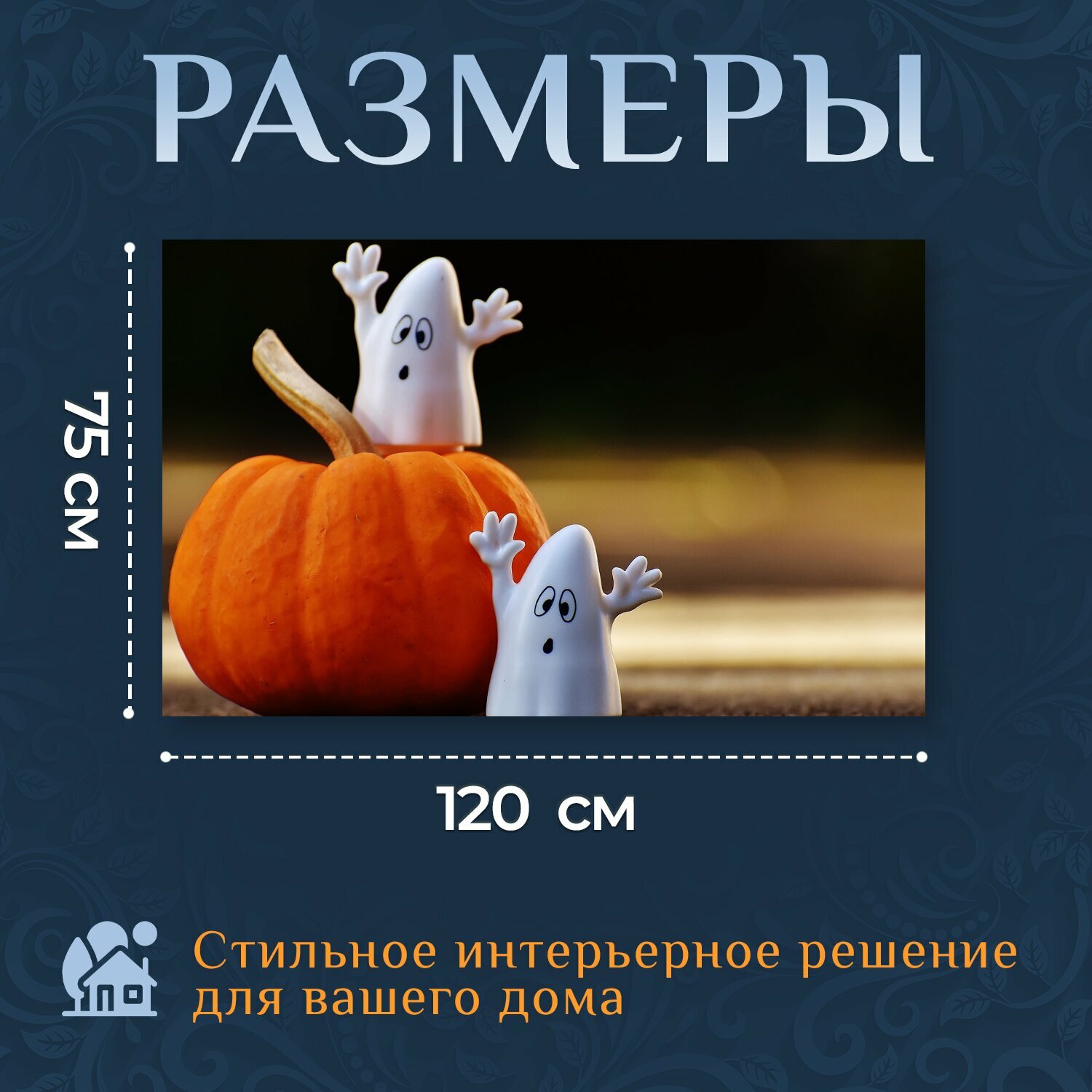 Картина на холсте "Хэллоуин, призраки, тыква" на подрамнике 120х75 см. для интерьера информация: