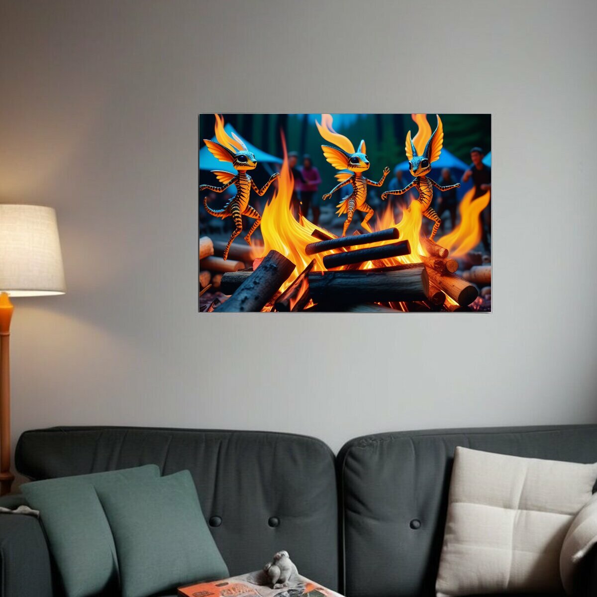 Постер "Сказочные существа, танцующие у костра" 90 x 60 см. для интерьера на стену в тубусе информация: