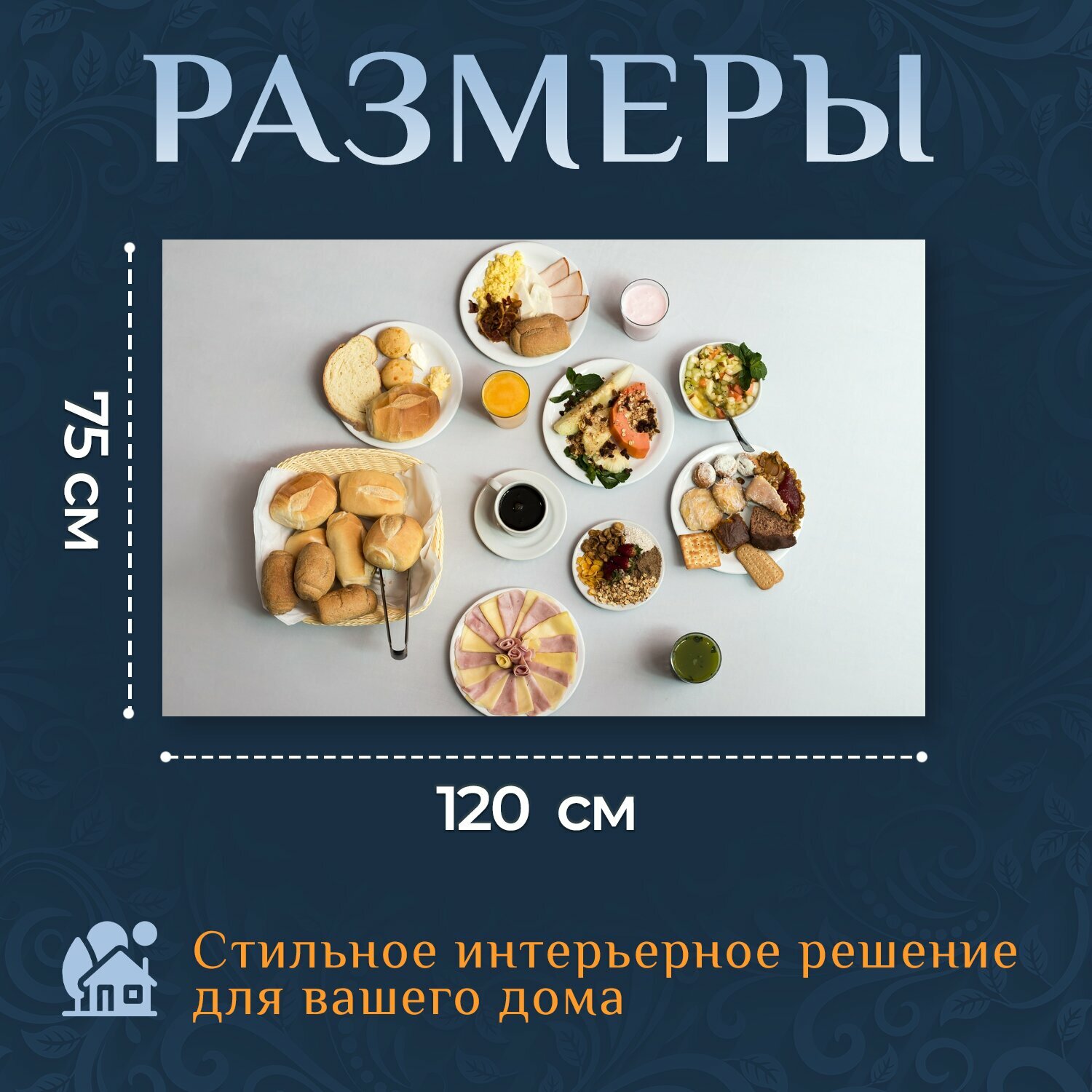 10 цен на Картина на холсте "Кофе, утро, питание" на подрамнике 120х75 см. для интерьера