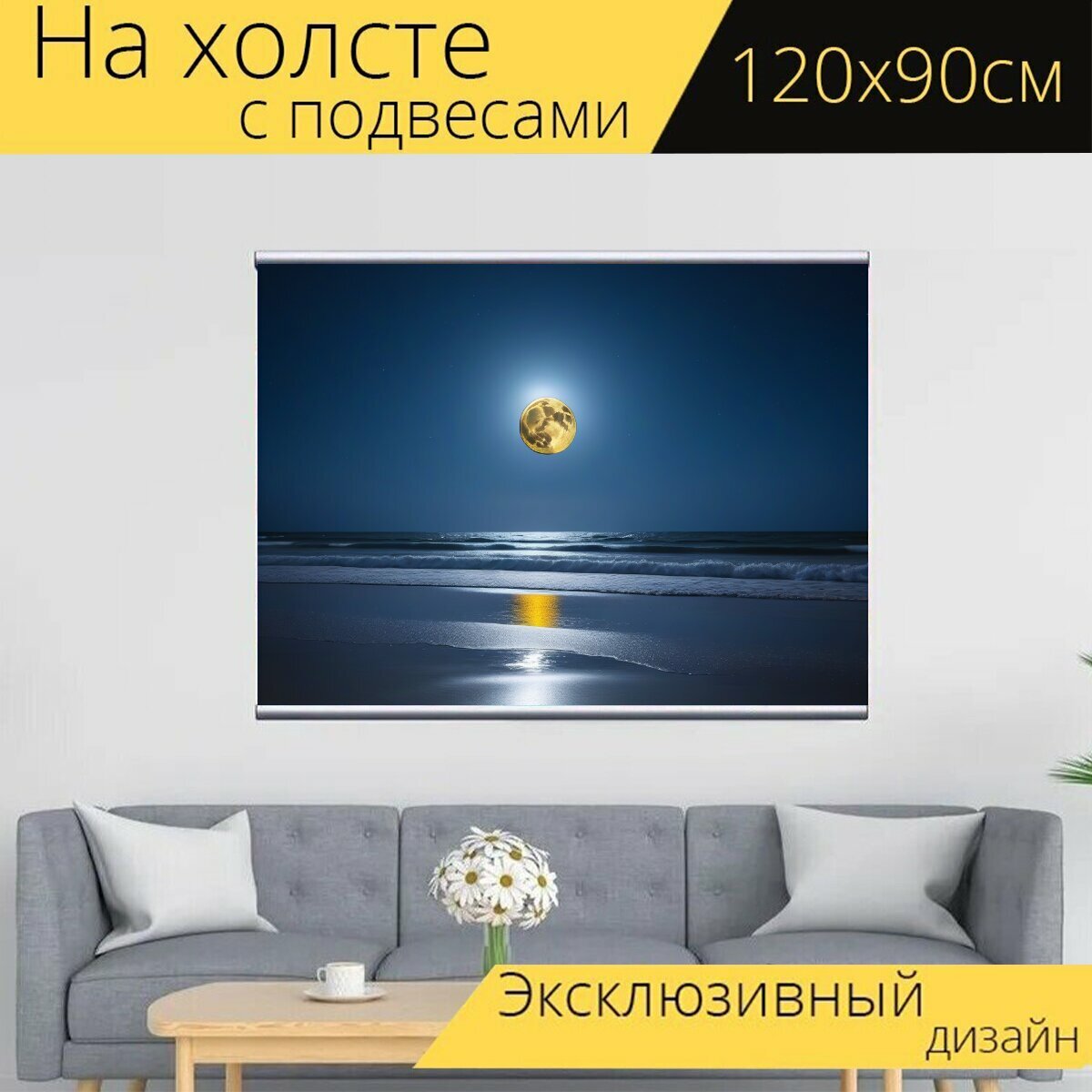 10 цен на Картина на холсте "Светящийся пляж в ночном отражении луны" с подвесами 120х90 см. для интерьера на стену