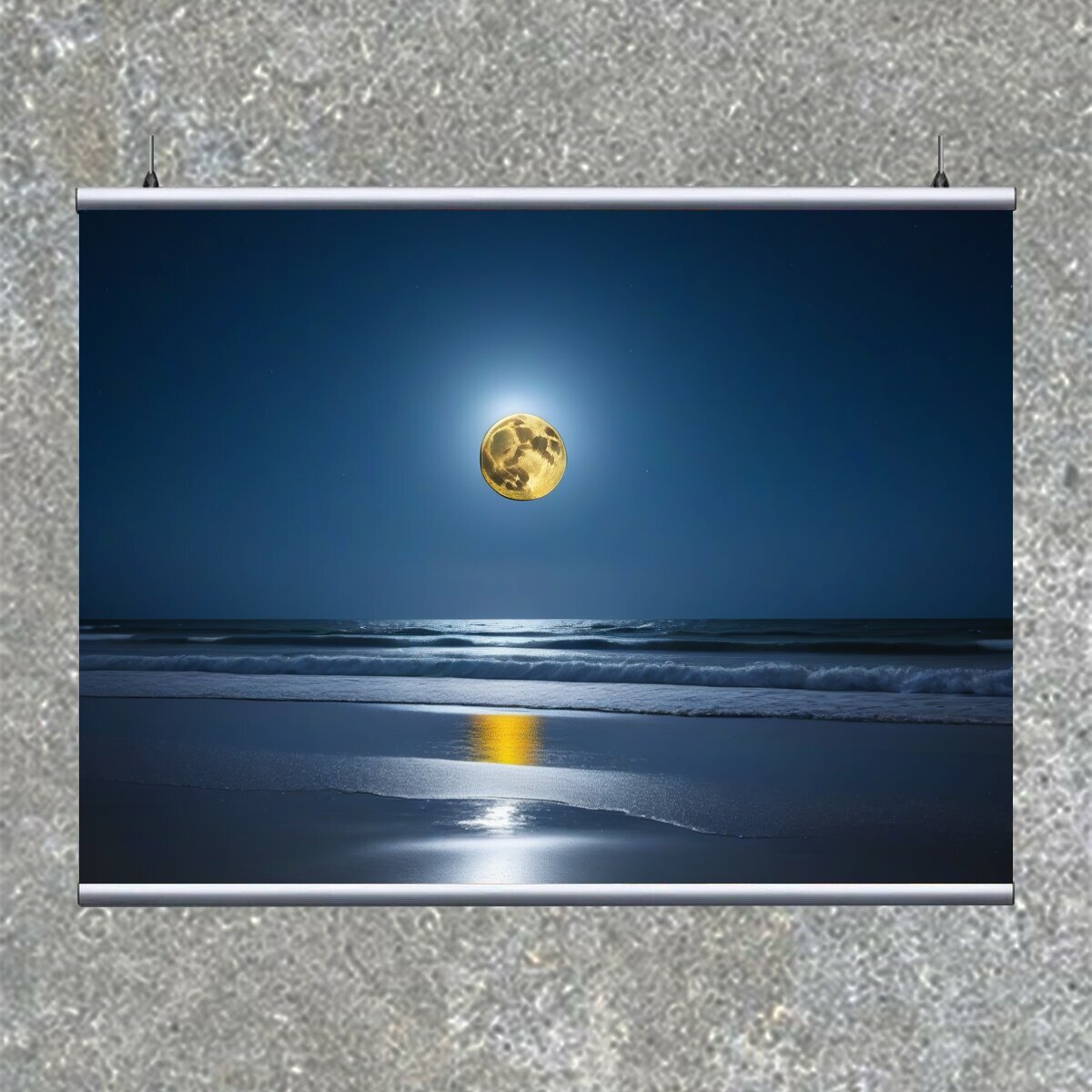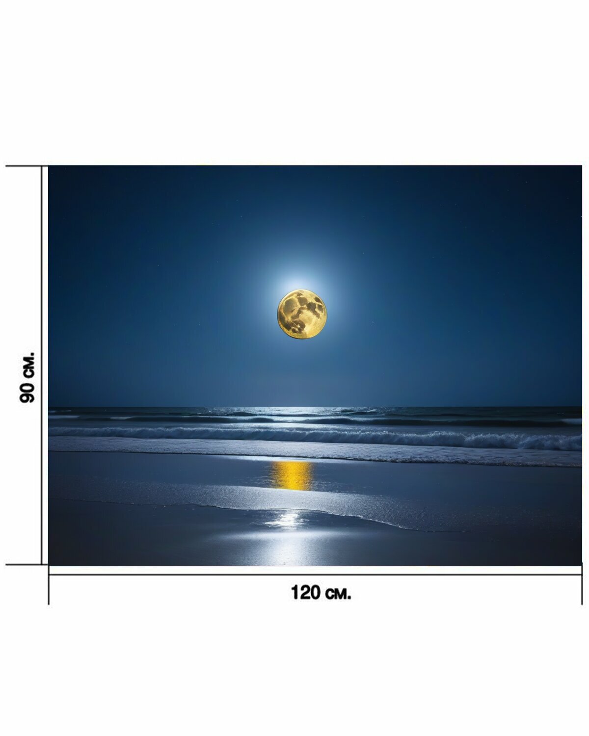 Картина на холсте "Светящийся пляж в ночном отражении луны" с подвесами 120х90 см. для интерьера на стену информация: