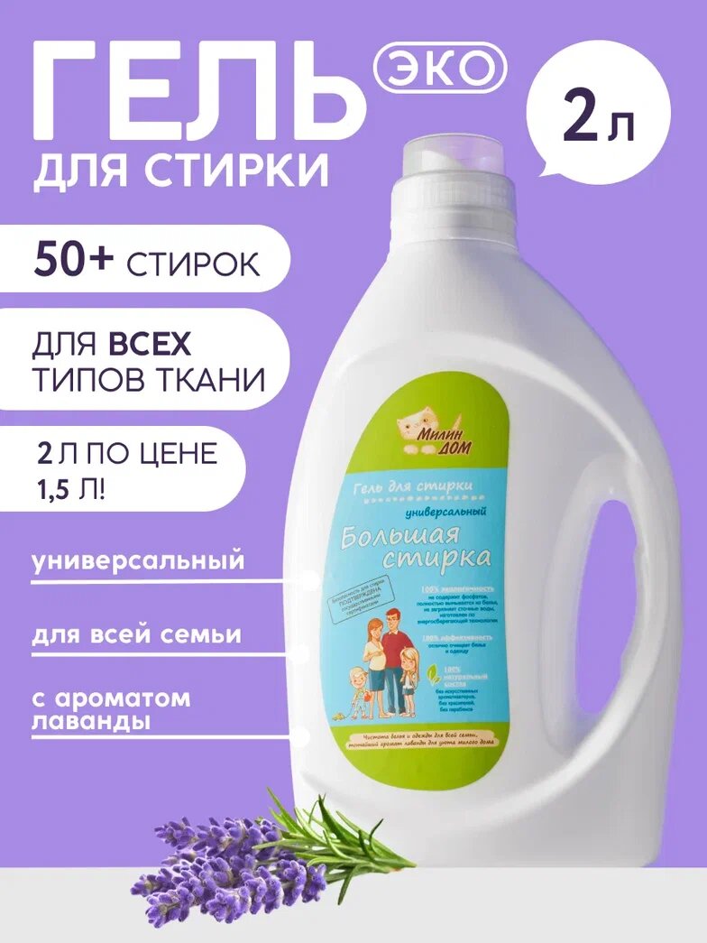 Гель для стирки универсальный милин ДОМ "Большая стирка" с ароматом лаванды, 2 литра информация: