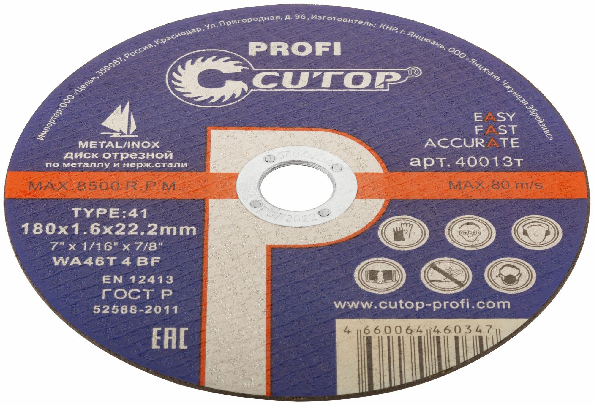 Круг отрезной Cutop Profi Т41-180х1,6х22,2 мм по металлу и нержавеющей стали информация: