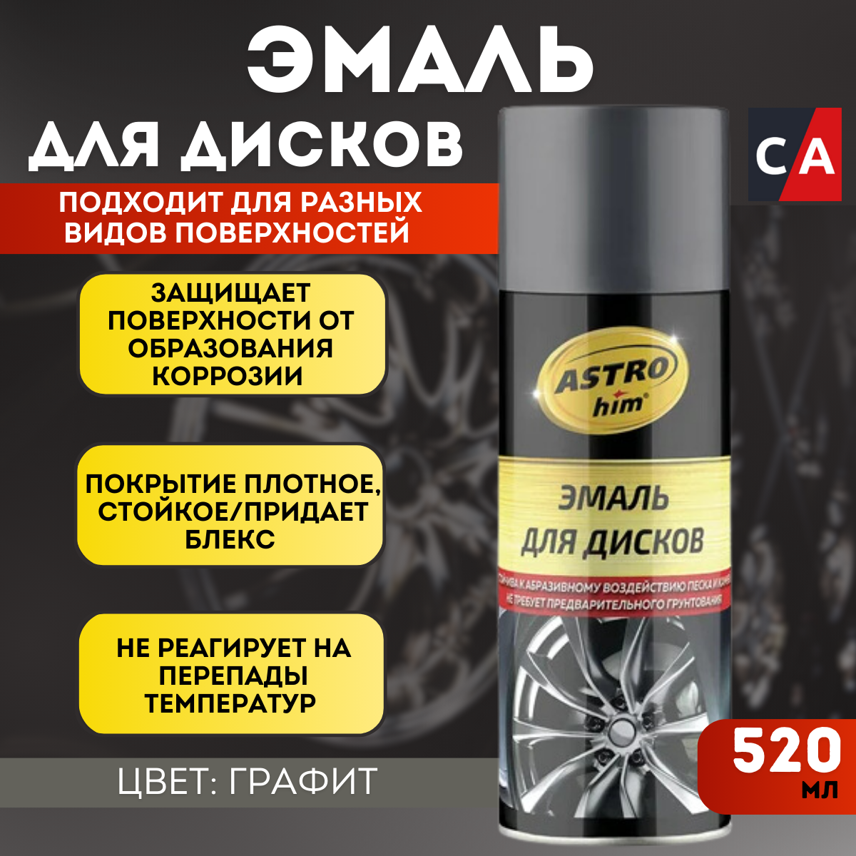 Эмаль для дисков, astrohim черная, аэрозоль 520 мл ac-602 600 ₽