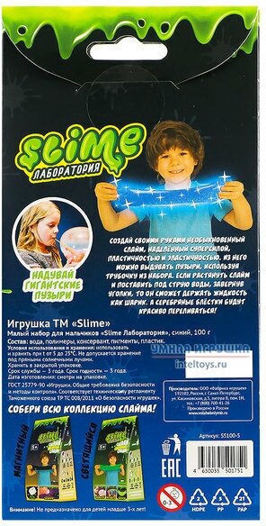 Отзывы на Лизун Slime Набор малый для мальчиков Лаборатория,синий 100гр. SS100-5.